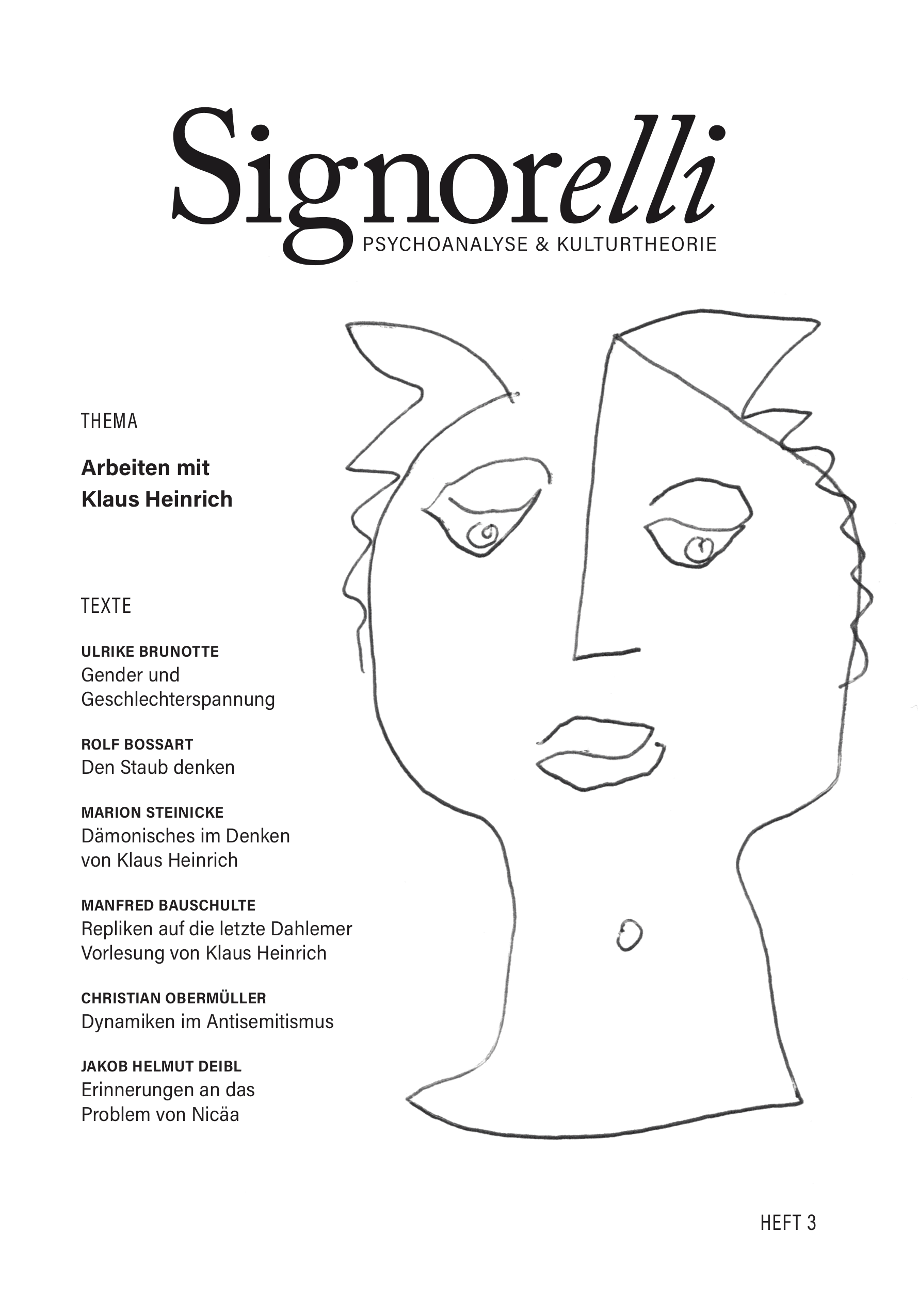 Im Editorial findet sich zudem ein kurzes Interview mit MANFRED BAUSCHULTE, in dem Heinrichs Auseinandersetzung mit der Kunst der Renaissance und mit dem Namensgeber dieser Zeitschrift, dem Maler Luca Signorelli, in den Blick genommen wird.